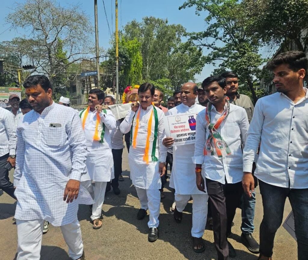 आंदोलनादरम्यान कार्यकर्त्यांनी गॅस सिलेंडरला फुलांचे हार घालून बांबूच्या तिरडीवर ठेवले होते. घोषणाबाजी करत काँग्रेस कार्यकर्त्यांनी शहरातील मुख्य मार्गावरून मोर्चा काढला. ‘गॅस दर कमी करा’, ‘महागाई रोखा’ अशा घोषणांनी परिसर दणाणून गेला.
